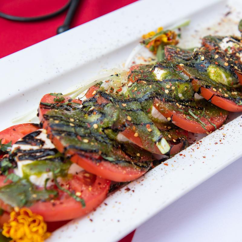 Ham, Bacon, Turkey Sausage, Gouda, Colby Jack, American, Goat Cheese, Red Onion, Tomato, Green Pepper, Jalapeño, Fresno Chili